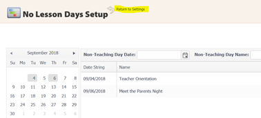 Click the “Return to Settings” arrow to go back once you have entered all your no lesson days.